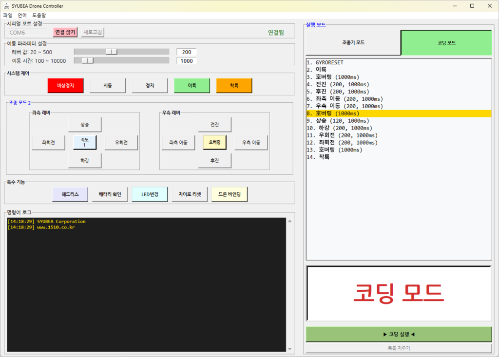 슈베아 드론 컨트롤러 for PC코딩 v 2.21